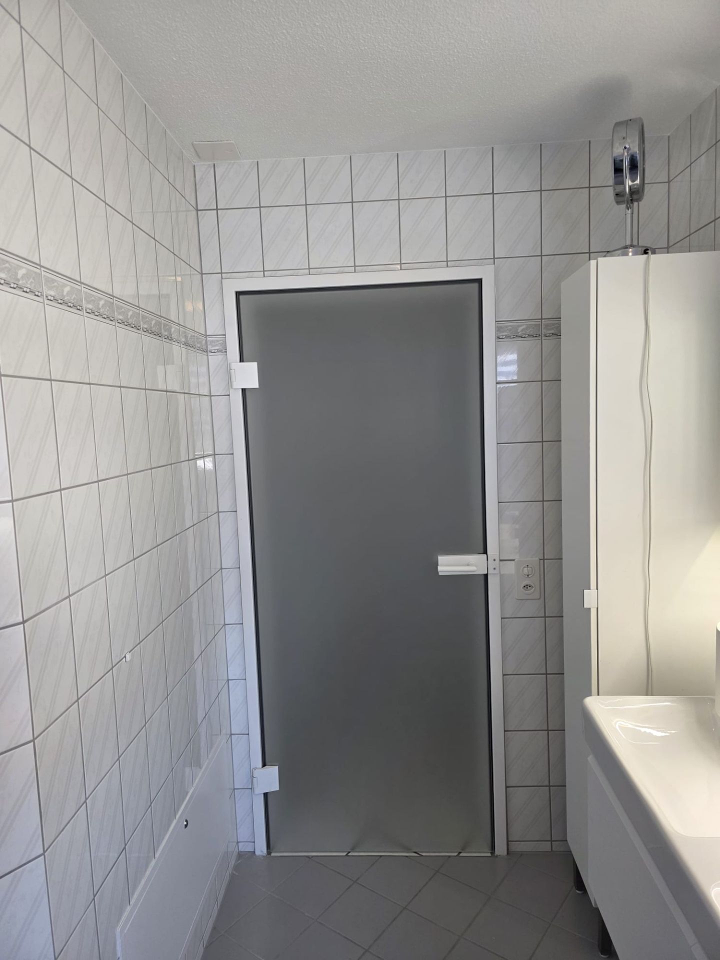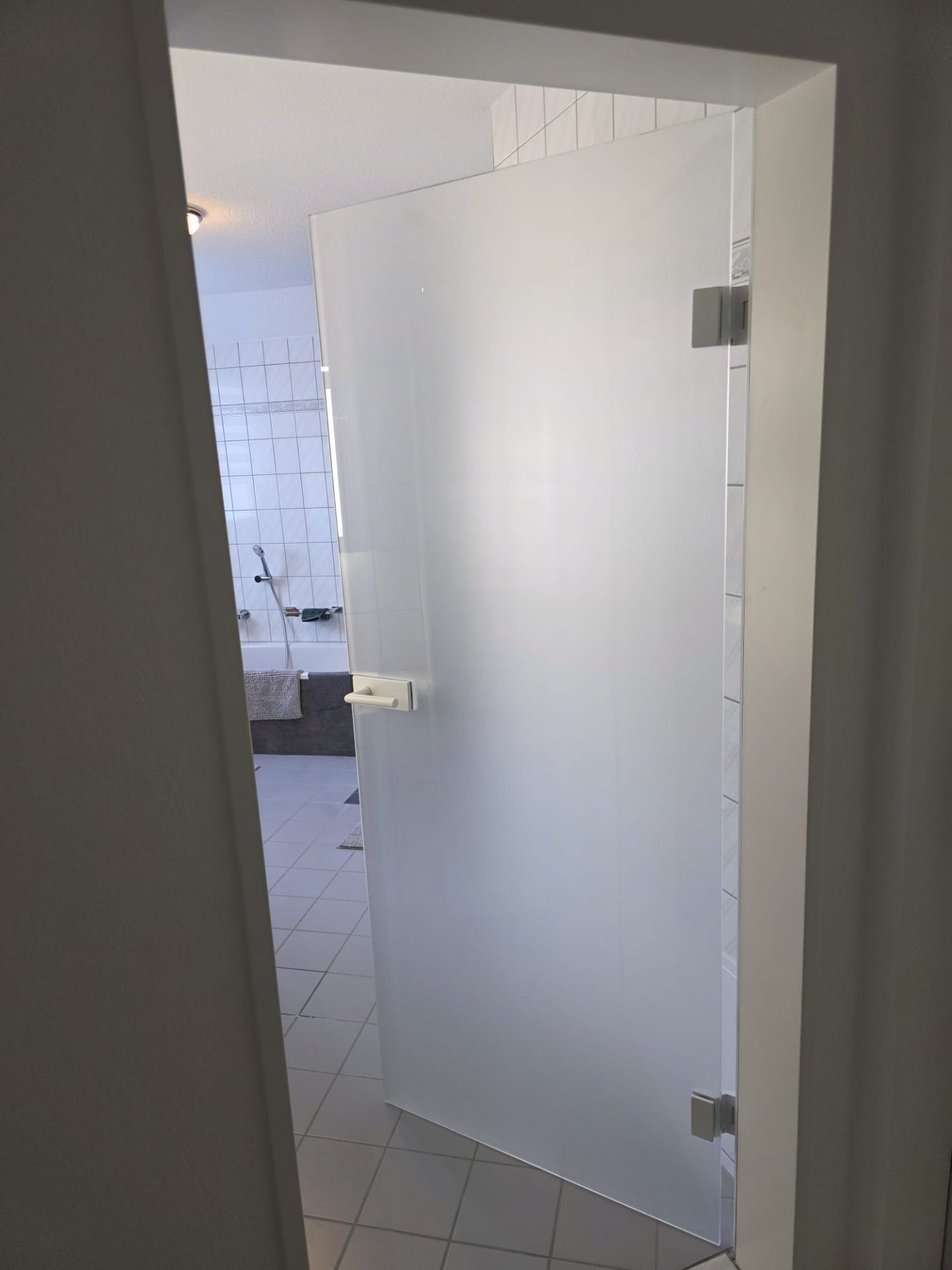 Glastüre Badezimmer mit SATIANTO WEISSGLAS